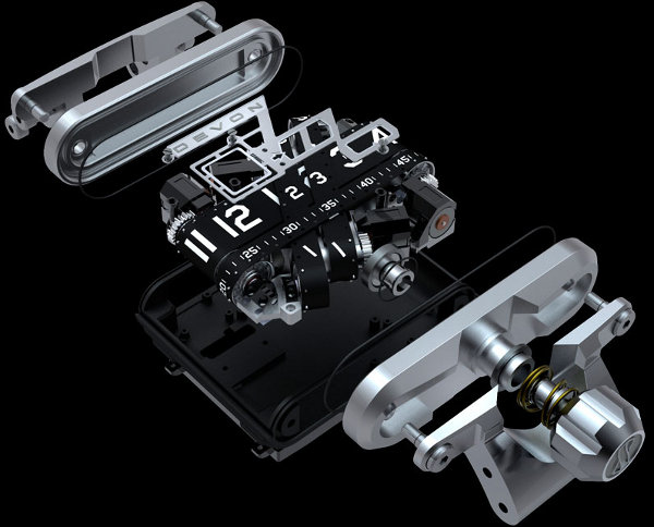 The Devon Works Tread 1 Watch is arguably the most cutting edge amongst this entire group, a timepiece of striking visuals and technology. The Tread 1 Watch features four internal 2-micron thin belts that spin within the case to display the time. It’s powered by a lithium polymer rechargeable cell that is charged by wireless induction. This electric system runs the belts that are kept in tune with an optical technology. Add that all up, and you have one of the most technically advanced, visually stunning watches ever made. The Devon Works Tread 1 Watch was designed by a California aerospace company, a group that is quite comfortable with fitting square pegs through round holes. This watch is a prime example of their technical prowess.