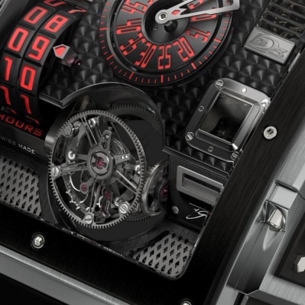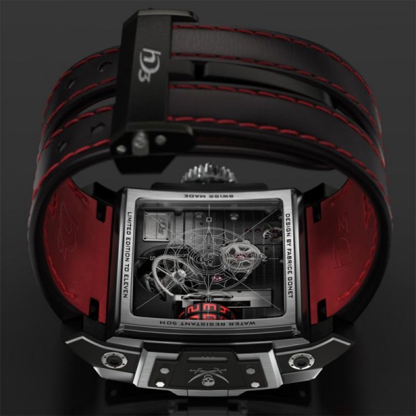 The HD3 Complication Black Pearl Watch feels like wearing a slot machine on your wrist. The hours tick by on a tumbler on your left, while minutes are reflected on the central dial on top. It’s not the time elements that make this watch so stunning, its the intricate machinery within. This watch is powered by a gravity-defying bi-axial tourbillon, spinning in the bottom center of the display case on top. The watch is inspired by the pirate era, featuring a blood-and-black color scheme and a jolly roger inset on its side. Hundreds of moving parts make up one hell of a watch, a rare piece of wrist jewelry you’re likely to never see twice.